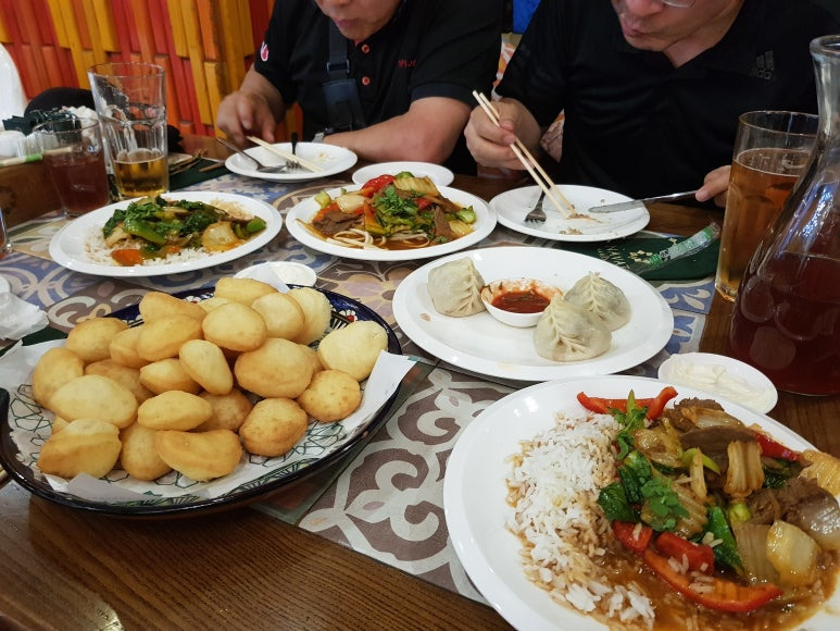 음식은 먹을 만함. 이곳 전통식사라고 하는데,,, 가격도 싸지 않음 4,5천원 정도. 이미 한국사람들 자주 와서 그런지 한국인들 입맛에 맞는 것만 내놓음. 어느 식당이건 현지식하면 비슷한게 계속 나옴. 오이, 토마토 자주 나오고 빵은 기본. 만두 어느 정도 맞음. 아주 맛있다는 건 모르겠음. 쌀은 역시 안남미. 보드카도 맛있음.