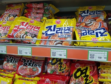 * 슈퍼마켓 - 간판이 현대적이고 화려하다. 자본주의가 들어오고 있다는 걸 보여준다. 이같은 화려함이 좀 전의 황폐함과 동시에 공존한다. 슈퍼에 있는 한국 라면 150이니 우리 돈으로는 2500원 정도. 비싸다. 이 나라 소득 수준을 고려하면 더 하다. 듣기로는 도시에서 직장 다니는 사람들이 우리 돈으로 월 100만원 정도 번다고 한다. 공무원들 월급은 그보다 훨씬 적고. 그래서 다수의 사람들이 부업을 한다고한다. 식당의 밥 가격 (우리돈 4-5천원) 맥주값 등등을 생각하면 도시 중산층들의 실재 소득은 우리의 1/3 혹은 1/4 정도 되지 않을까 한다.