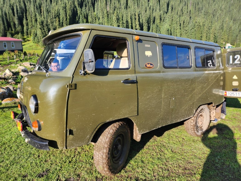 산 아래에서 산장까지는 걸어가도 되고 차량을 이용해도 된다. 옛 소련의 군용트럭, 벤을 개조한 차량이 등산로 입구쪽에 있다.