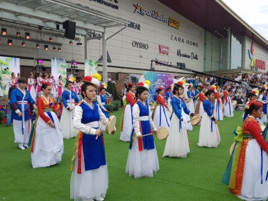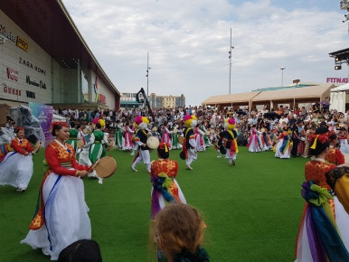 특별히 찾아간 곳은 고려극장인가 하는 곳이다. 홍범도 장군이 수위로 일했었다고 하는 곳인데 행사가 있어서 문을 닫았다. 그곳 직원에게 행사 소식을 듣고 행사가 열린다는 곳으로 갔다. 대규모 쇼핑몰들이 있는 곳인데 마침 고려인 문화의 날 행사가 열리고 있었다. 재수 좋게 보기 힘든 장면을 봤다.